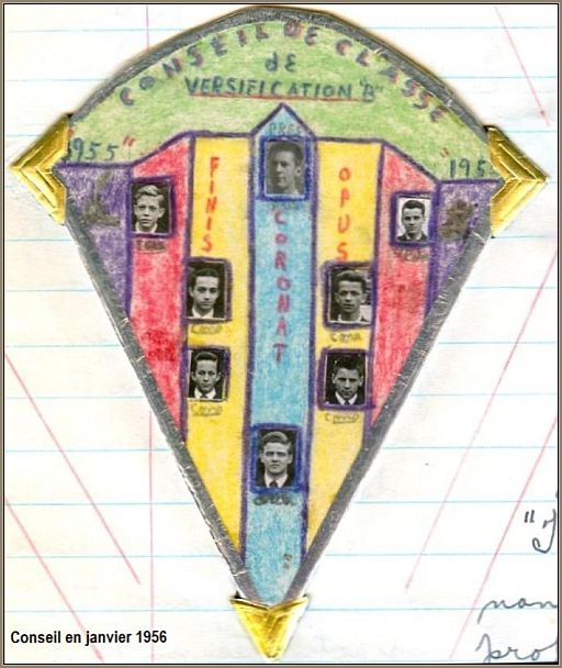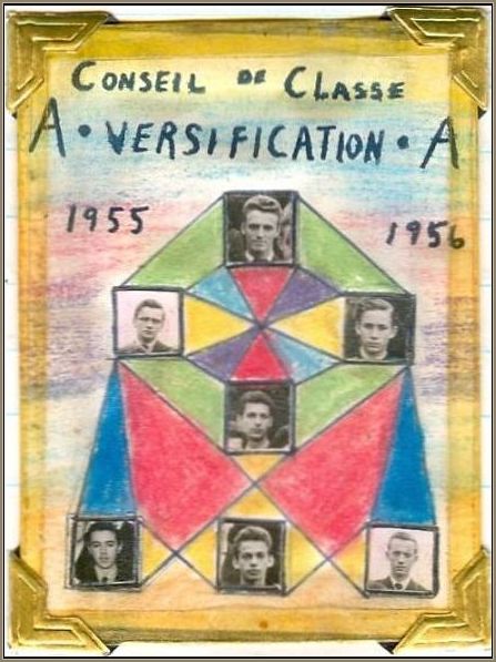 Dès le 17 septembre, les versificateurs du groupe A procédèrent à des élections afin de choisir un conseil de classe. Un des membres du conseil, l’archiviste, était responsable de tenir un Cahier de classe dans lequel il inscrivait, avec la collaboration des autres, ce qui se passait au jour le jour durant l’année scolaire. Ce journal était d’abord un genre de registre des événements de l’année mais aussi une mémoire des essais ltittéraires des membres de la classe. C’est grâce au travail de moine des archivistes que ce site peut présenter les péripéties du 97e cours. Vous pouvez voir les membres du conseil de classe tel qu’il apparaissait en 1955 et cliquez ici pour connaître les membres du conseil en glissant la souris sur les mini photos.